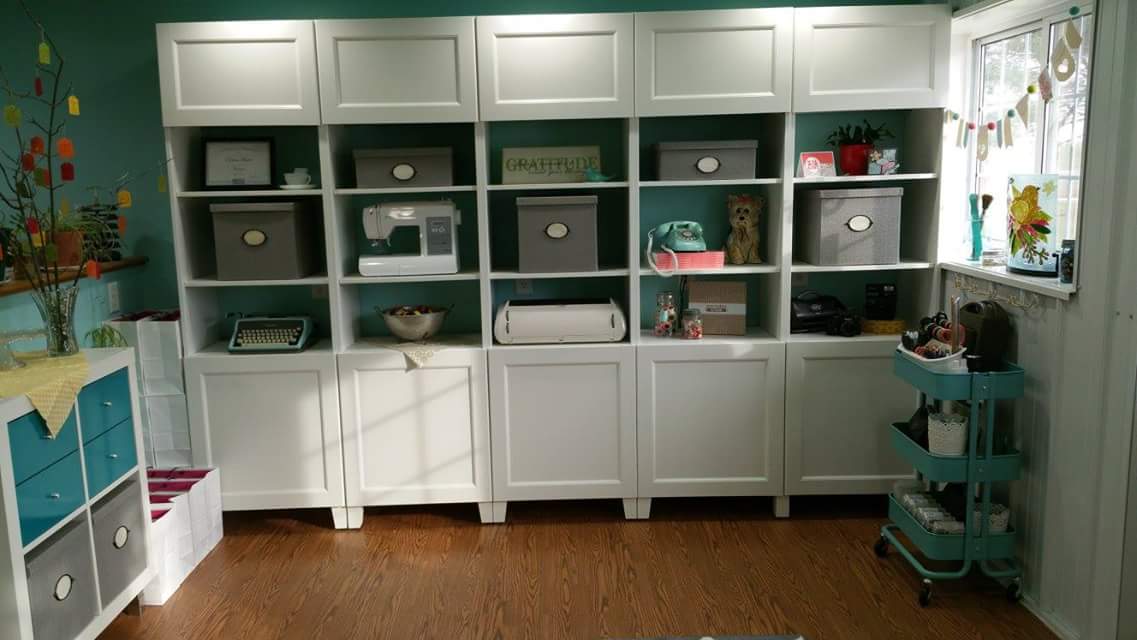 More wonderful pieces from Stamp-N-Storage on this counter top. All of my punches, stamp pads, ribbons and adhesives are organized here, and when this space is clean I sure do feel creative!   When I was deciding what storage solutions I needed in this space, I made a phone call and got help figuring out what would fit where from the builder himself, he was so patient and helpful.  Now they offer a Studio Designer app that is a lot of fun to play with.  Again, I have to mention that the creativity flows better when everything is where it belongs, and that is truly priceless!